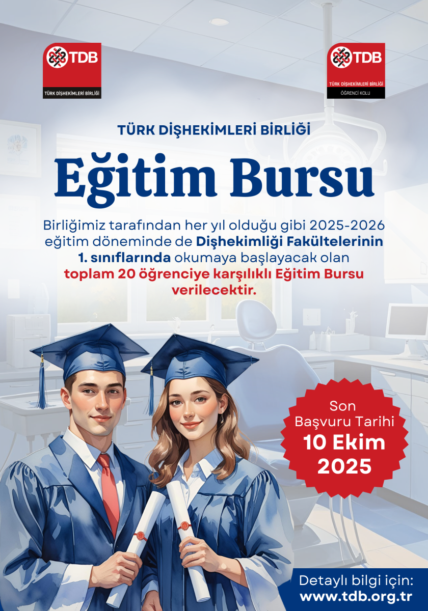 Birliğimiz tarafından her yıl olduğu gibi 2025-2026 eğitim döneminde de Dişhekimliği Fakültelerinin 1.sınıflarında okumaya başlayacak olan toplam 20 öğrenciye karşılıklı Eğitim Bursu verilecektir.