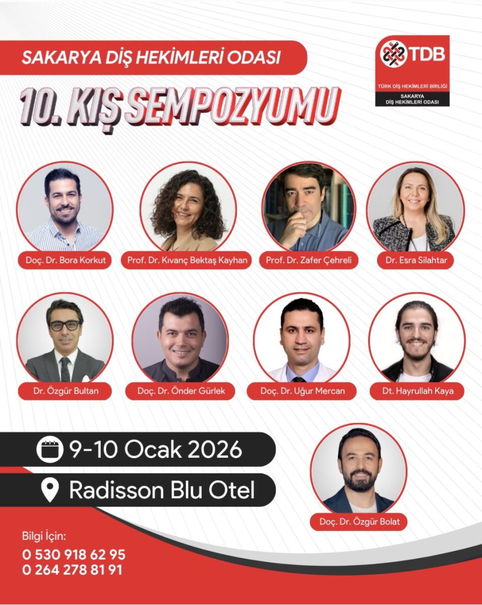 Sakarya Dişhekimleri Odası’nın düzenlediği 10.Kış Sempozyumu, 9-10 Ocak 2026 tarihlerinde Radisson Blu Hotel’de yapılacak.