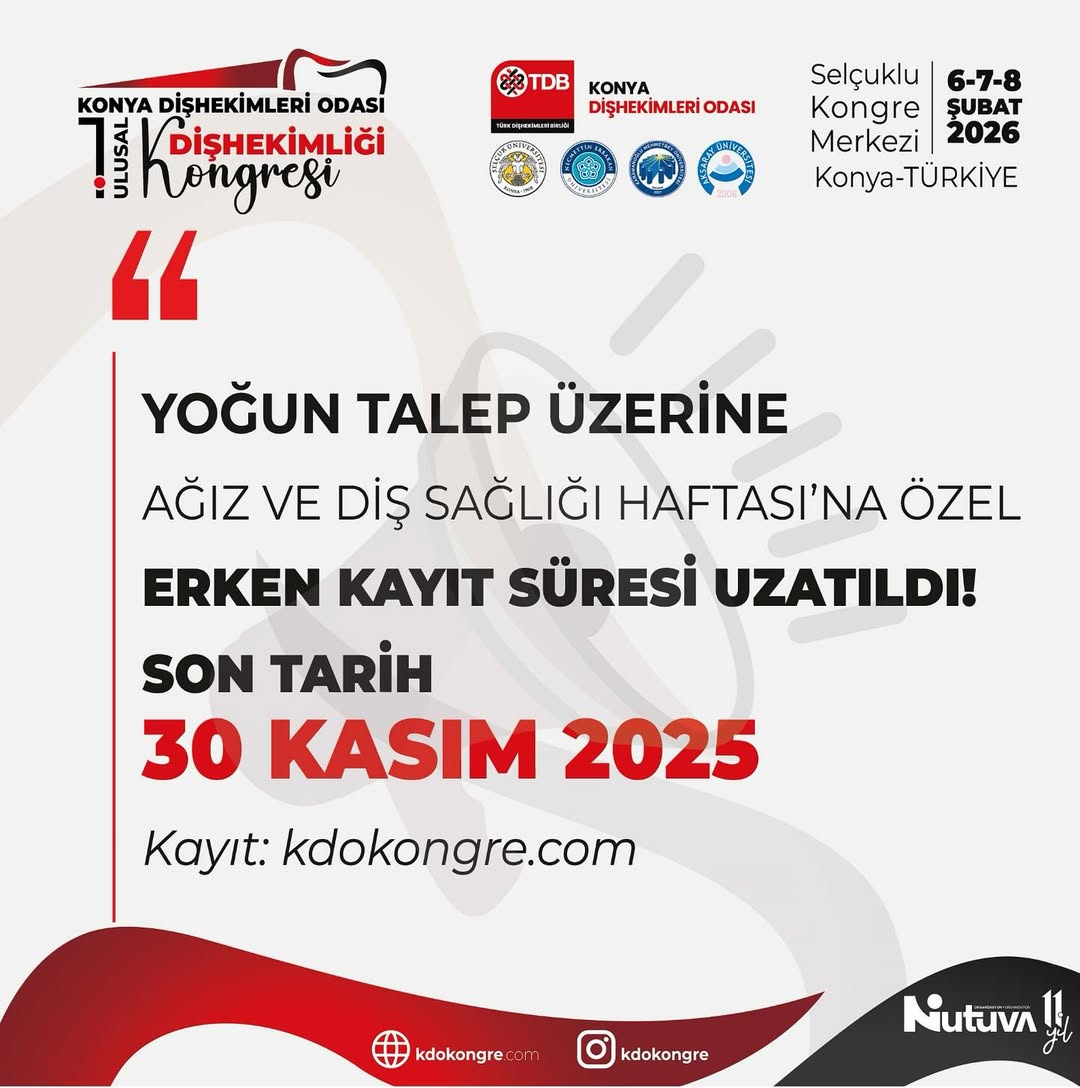 KONYA DİŞHEKİMLERİ ODASI 1. ULUSAL DİŞHEKİMLİĞİ KONGRESİ ERKEN KAYIT SÜRESİ UZATILDI