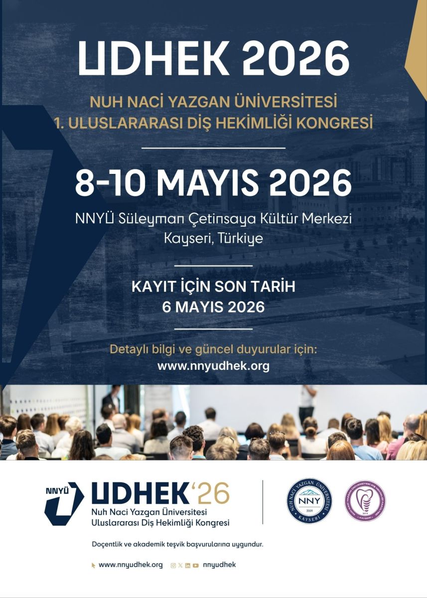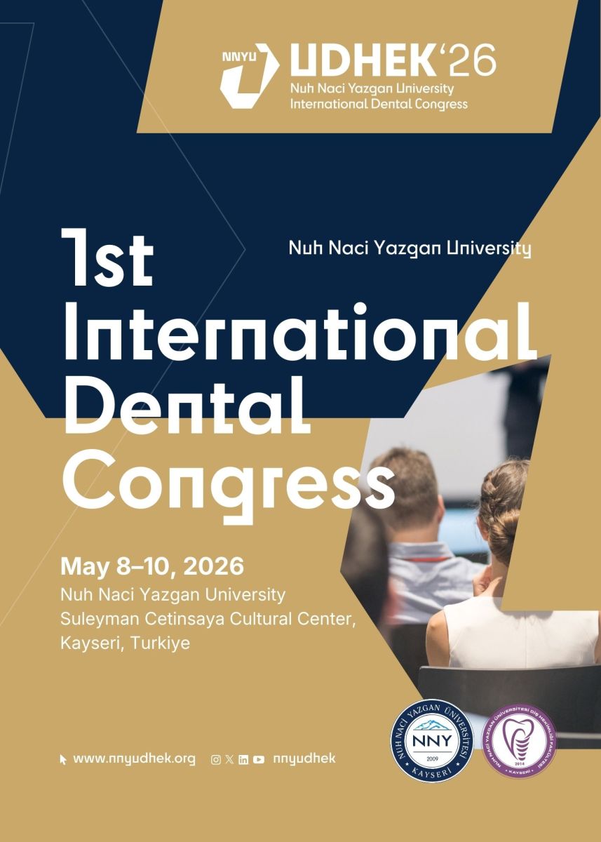 Nuh Naci Yazgan Üniversitesi 1. Uluslararası Dişhekimliği Kongresi 8-10 Mayıs 2026 tarihinde NNYÜ Süleyman Çetinkaya Kültür Merkezi Kayseri’de düzenlenecek.