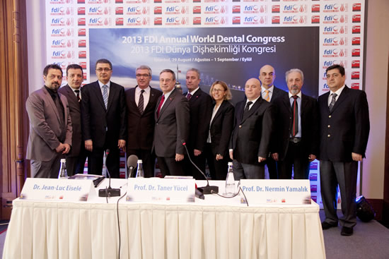 Ülkemiz adına son derece önemli olan bu gelişme 12 Nisan 2012 tarihinde İstanbul Hilton Otelinde yapılan basın toplantısı ile kamuoyuna duyuruldu. TDB Genel Başkanı Prof.Dr.Taner YÜCEL ve FDI Executive Director Sayın Jean-Luc EISELE’nin kongre sözleşmesi imzaladığı basın toplantısına; TDB Merkez Yönetim Kurulu Üyelerinin yanı sıra FDI Konsey Üyesi Prof.Dr. Nermin YAMALIK, Adana Dişhekimleri Odası Başkanı Hasan YAMAN, Antalya Dişhekimleri Odası Başkanı Caner GÜLEÇ, Aydın Dişhekimleri Odası Başkanı Oktay İŞBİLİR, Çanakkale Dişhekimleri Odası Başkanı Aşkın ŞİMŞEK, Kocaeli Dişhekimleri Odası Başkanı Murat ÖZYILDIRIM, Malatya Dişhekimleri Odası Başkanı Volkan ÖNEN, Muğla Dişhekimleri Odası Başkanı Yusuf KILIÇ, Tekirdağ Dişhekimleri Odası Başkanı Birol KARAİBİŞ ile Marmara Üniversitesi Dişhekimliği Fakültesi Dekanı Prof.Dr.Mahir GÜNDAY ve Yeditepe Üniversitesi Dişhekimliği Fakültesi Dekanı Prof.Dr.Türker SANDALLI katıldılar.