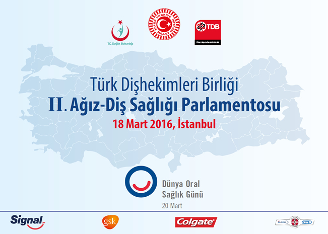 Bu yıl da Birliğimizce; Sağlık Bakanı adına Müsteşarı Prof. Dr. Eyüp Gümüş, TBMM Sağlık, Aile, Çalışma ve Sosyal İşler Komisyonu Başkan Vekili, dişhekimi milletvekillerimiz, Bakanlık diğer üst düzey yetkilileri ve İstanbul'da bulunan dişhekimliği fakültesi dekanları, tıp ve dişhekimliği alanında faaliyet gösteren bilimsel dernek ve vakıf başkanları, ağız bakım ürünleri endüstrisi ve ilaç firma temsilcileri, Dişhekimleri Odası Başkanlarımızın katılımı ile "2.Ağız-Diş Sağlığı Parlamentosu" toplantısını 18 Mart 2016 tarihinde İstanbul'da gerçekleştireceğiz.