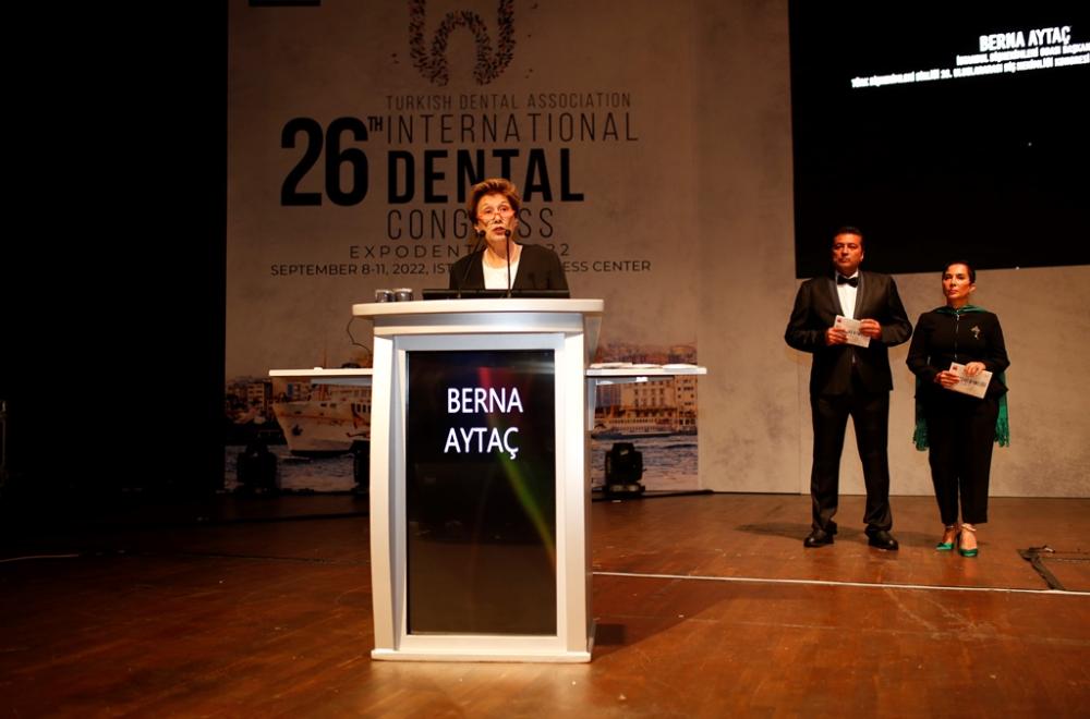 Daha sonra söz alan kongreye ev sahipliği yapan İstanbul Dişhekimleri Odası ve Kongre Organizasyon Komitesi Başkanı Berna Aytaç, “...İstanbul Dişhekimleri Odası Yönetim Kurulu ve Organizasyon Komitemiz adına TDB 26. Uluslararası Dişhekimliği Kongre'mize hoş geldiniz diyorum.Uzun pandemi süreci, hayatlarımızın birkaç senesini çaldı. Sevdiklerimiz, arkadaşlarımız ve hatta ailelerimizin büyük bir bölümüyle dahi uzak kaldığımız zamanlar bitiyor ve nihayet alıştığımız yaşantımıza yavaş yavaş geri dönmeye başladık.2019 yılından sonra ilk kez bu denli büyük ve kapsamlı bir kongreye İstanbul Dişhekimleri Odası olarak ev sahipliği yapıyor olmaktan mutluyuz, gururluyuz.” diye konuştu.