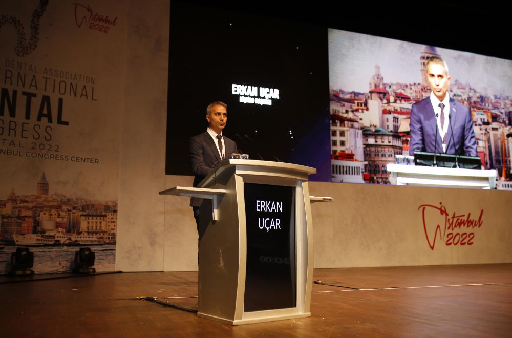 Ağız-diş sağlığı topluluklarının bir araya gelerek, yerel ve küresel düzeyde dişhekimliğinin geleceğine katkı sağlayacak en son klinik yaklaşımlar üzerine bilgi paylaşımı yapabilmeleri açısından Bugün, burada düzenlenen ve benzeri etkinliklerin önemini bir kez daha vurgulamak isterim. Böylesi toplantılar, bizlere yalnızca yeni beceriler kazandırmakla kalmaz; aynı zamanda birbirimizden öğreneceklerimizle, ağız-diş sağlığını bir halk sağlığı önceliği yapmamızda bizlere yardımcı da olacaktır. FDI’da sizin gibi güçlü bir üye ortağımız olduğu için onur duyuyoruz ve iş birliği ruhunuzu takdirle karşılıyoruz. Sizlere teşekkür ediyor ve başarılı bir kongre geçirmenizi diliyorum.” dedi.