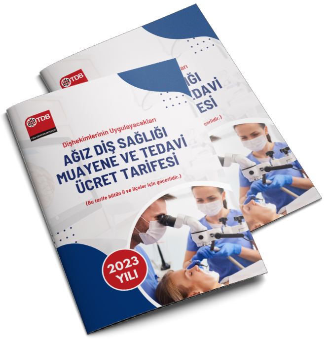Meslektaşlarımızın 1 Ocak 2023 tarihinden itibaren yıl boyunca uygulayacakları 'Ağız Diş Sağlığı Muayene ve Tedavi Ücret Tarifesi', Odalarımızdan gelen görüş ve öneriler doğrultusunda belirlenerek Merkez Yönetim Kurulumuzun 14-15 Aralık 2022 tarihli toplantısında kabul edilmiş ve Sağlık Bakanlığı'na gönderilmiştir.