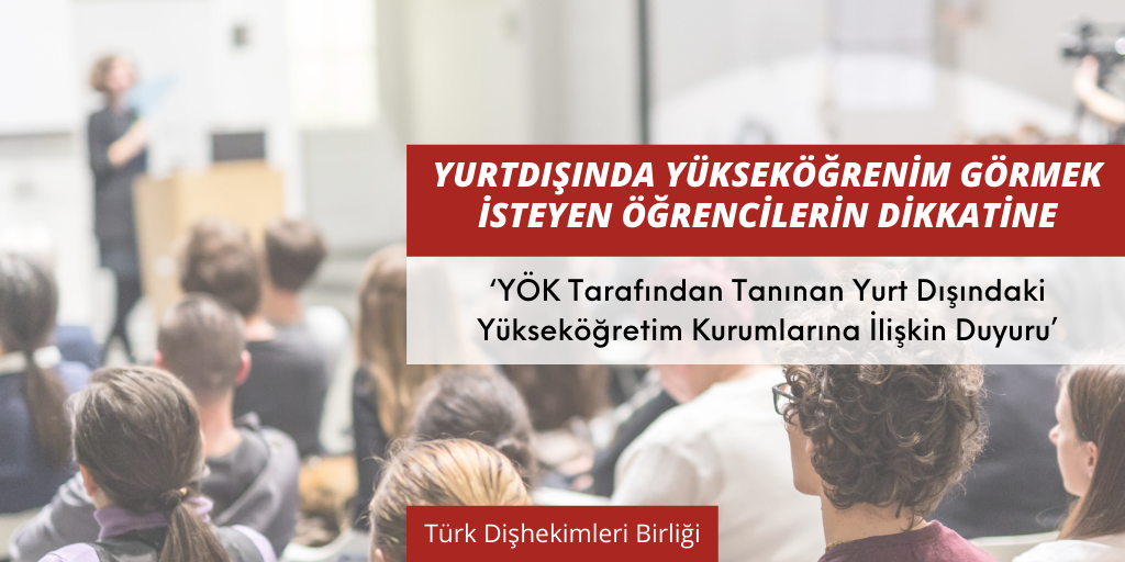 Yurtdışında yükseköğrenim görmek isteyen öğrencilerimizin, YÖK tarafından “tanınan" yükseköğretim kurumlarını e-Devletten (https://www.turkiye.gov.tr/yok-okul-tanima-belgesi-sorgulama) görmeleri mümkündür. Bu husus, öğrencilerimizin mezun olduklarında denklik problemleri yaşamaması için son derece önemlidir.