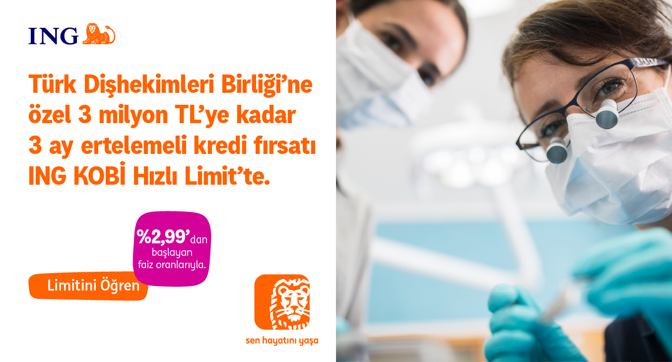 Ücretli çalışan dişhekimlerine, %0,99 faiz oranı ile 6 ay vadede 50.000 TL'ye kadar kredi, %0,99 faiz oranı ile 3 ay vadede 25.000 TL'ye kadar Taksitli Destek Hesap fırsatı.